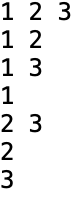 [1, 2, 3], [1, 2], [1, 3], [1], [2, 3], [2], [3], [] 을 출력.