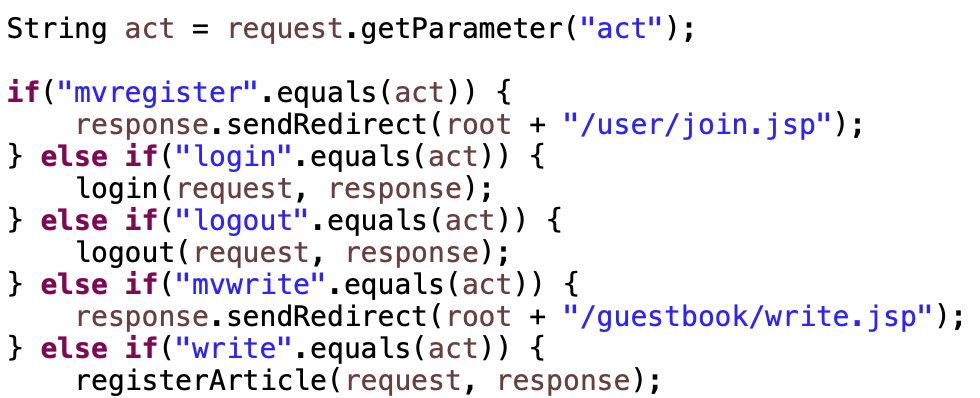 handlerMapping : 어떤 기능인지 구분해주는 역할(아래 이미지에서 "act" 역할)