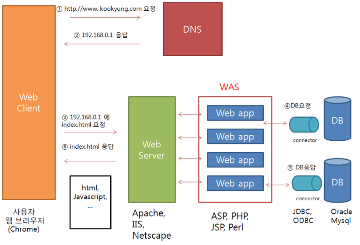 위 사진으로 웹 서버의 동작 흐름을 파악할 줄 알아야 한다.
