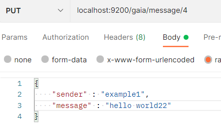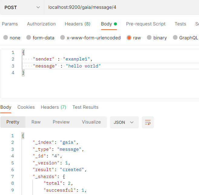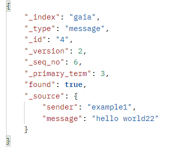 gaia 인덱스의 message 타입에 4라는 아이디로 저장했다는 의미이다.