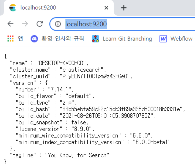 - bin/elasticsearch.bat 실행