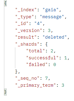 gaia 인덱스의 message 타입이 4인 데이터를 삭제한다는 의미이다. 성공적으로 데이터를 삭제하면 위와 같은 메세지를 얻을 수 있다.