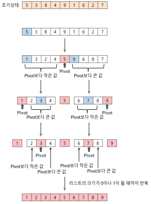 | 퀵정렬 | nlogn | nlogn | n^2 | 0.014 |